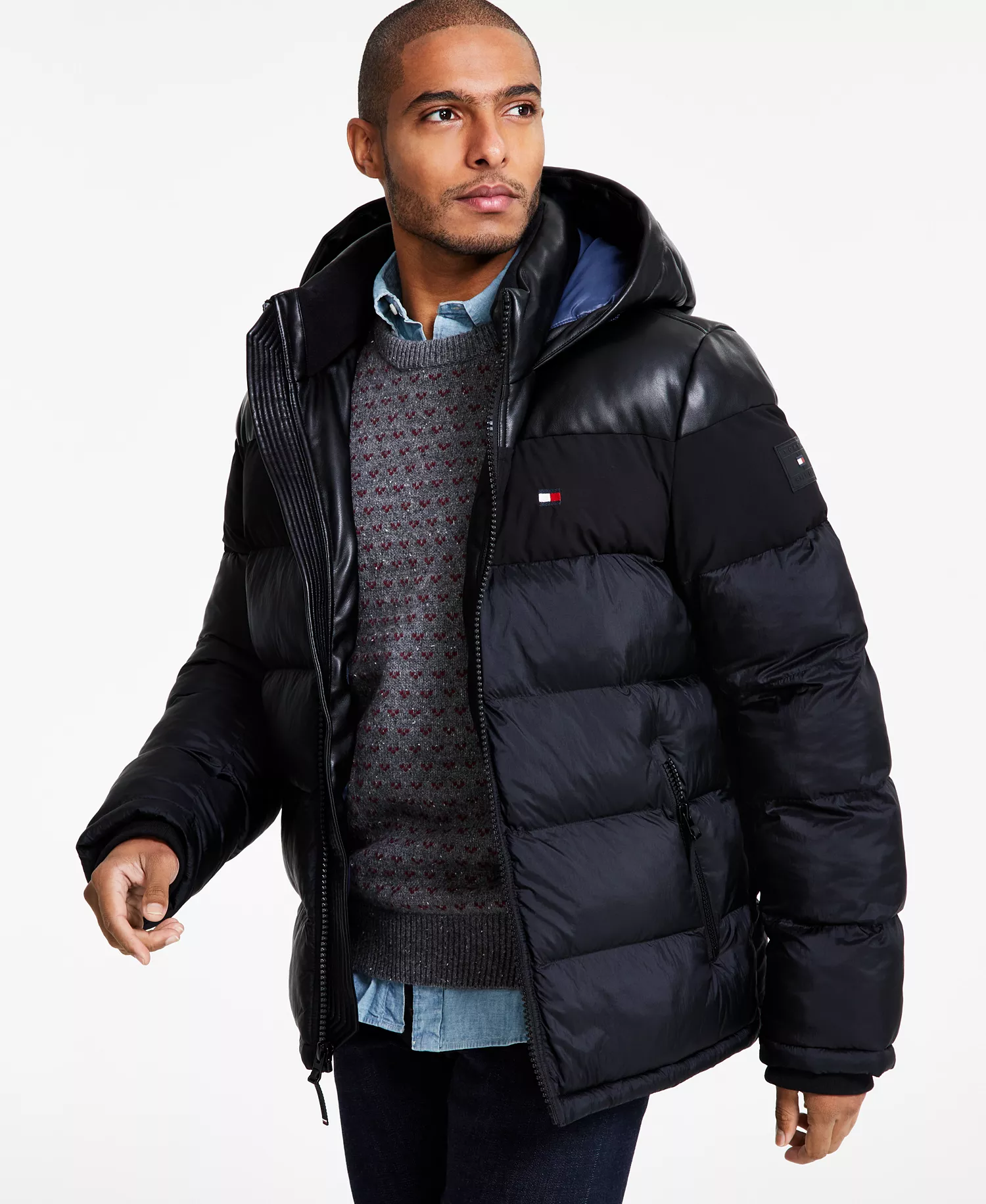 Give your dad a fashion boost with this ribbed sweater. Storm cuffs keep you warm, while wind and water-resistant materials help keep you dry. The attached hood, lined with cozy microfleece, provides added comfort and protection.