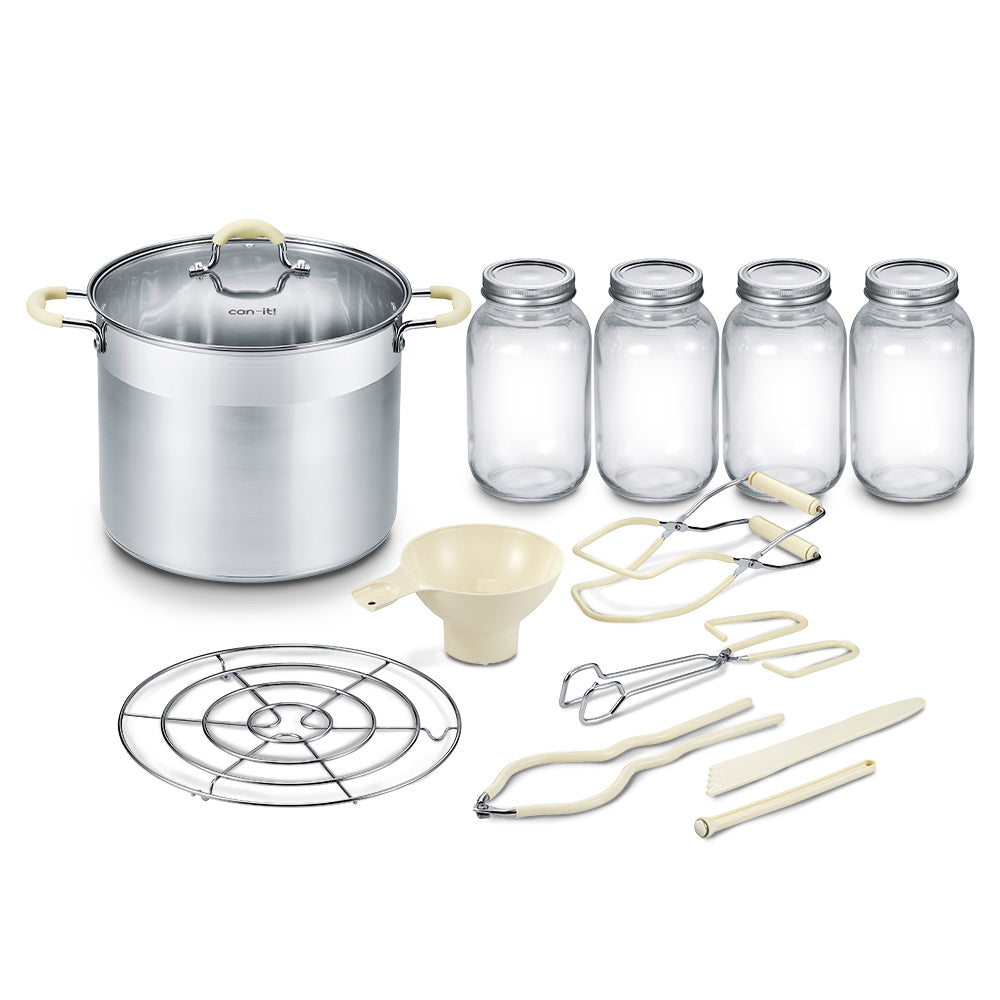 Cooking at home is a great way to promote daily health, and Concord Cooking delivers commercial-quality performance right in your kitchen. This stainless steel cookware has a triple-ply base for faster, even heating, making meals easier and more consistent. If you want to start canning, this kit has everything you need and the pot can also be used for boiling, stewing and steaming. You can also add a set of vertical skewers and a stainless steel frying pan to complete your kitchen.